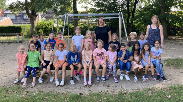 Wir sind die Klasse 3b mit unseren Lehrerinnen Frau Albers und Frau Korbik.