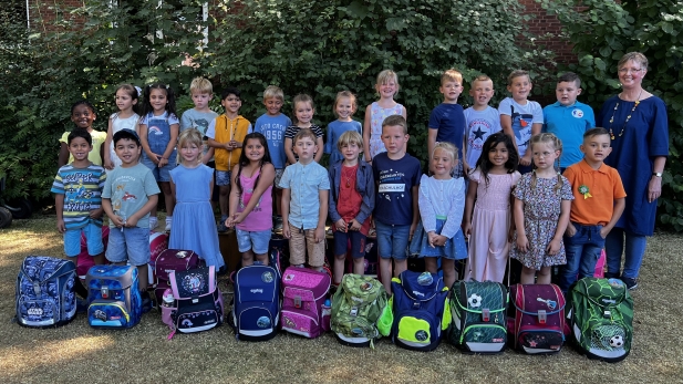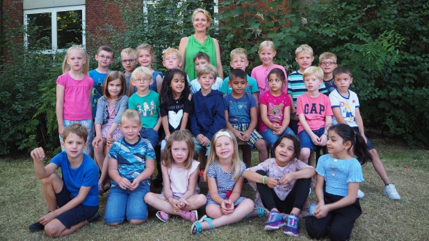 Wir sind die Klasse 4b mit unserer Lehrerin Frau Lesser-Beckersjürgen