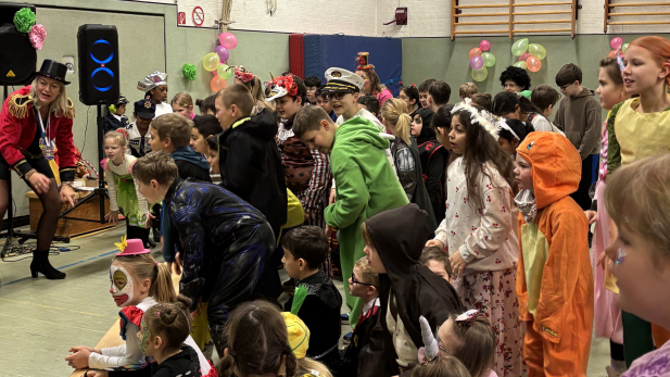 Unsere Schule verwandelt sich in ein fröhlich-buntes Karnevalshaus und wir feiern in fantasievollen Kostümen ein ausgelassenes Fest.