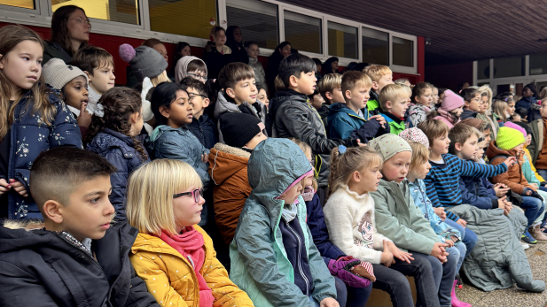 Die Kids aus den dritten Klassen zeigen uns die Geschichte von Sankt Martin, der mit dem armen Bettler seinen Mantel teilt.