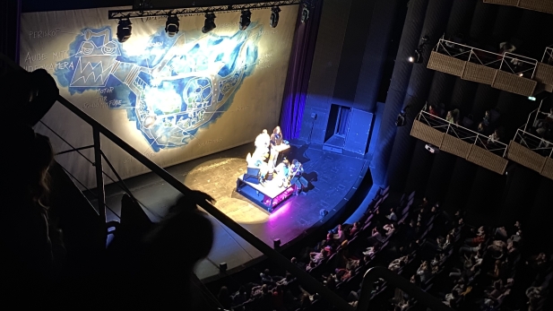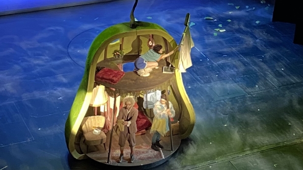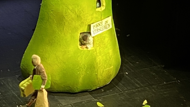 Der Besuch des Theaters in Münster ist immer etwas ganz Besonderes. Die Freude und Aufregung ist daher groß, als die Busse kommen und die Kinder und Lehrkräfte der 3. und 4. Klassen zu den Städtischen Bühnen Münster bringen. Aufgeführt wird das Familienstück "Die unglaubliche Geschichte der Riesenbirne" nach einem dänischen Bilderbuch. Alle Kinder verfolgen begeistert das Schauspiel, staunen über das Bühnenbild, die Kostüme, die Musik und natürlich die Schauspieler und berichten auch Tage später noch mit leuchtenden Augen von einzelnen Szenen.